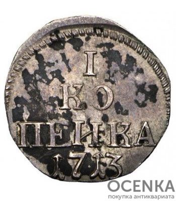 Серебряная 1 копейка 1713 года Петр 1
