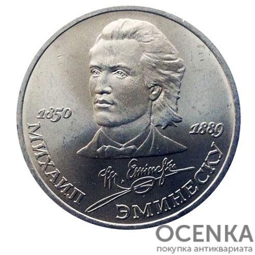 Хотите выгодно продать 1 рубль 1989 г. М. Эминеску ? Воспользуйтесь услугами нашего сайта, средняя цена товара по Украине oт 25 грн. дo 50 грн. Мы специализируемся на оценке антикварных, старинных, памятных раритетных предметов, знаем точную цену таким сокровищам.