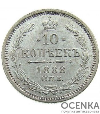 Хотите выгодно продать 10 копеек 1888 года Александр 3 ? Воспользуйтесь услугами нашего сайта, средняя цена товара по Украине oт 250 грн. дo 2500 грн. Мы специализируемся на оценке антикварных, старинных, памятных раритетных предметов, знаем точную цену таким сокровищам.
