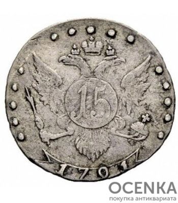 Хотите выгодно продать 15 копеек 1791 года Екатерина 2 ? Воспользуйтесь услугами нашего сайта, средняя цена товара по Украине oт 230 грн. дo 1000 грн. Мы специализируемся на оценке антикварных, старинных, памятных раритетных предметов, знаем точную цену таким сокровищам.