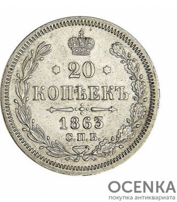 Продать 20 копеек 1863 года Александр 2 по выгодной цене онлайн
