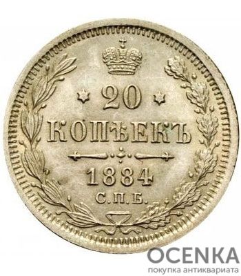 Хотите выгодно продать 20 копеек 1884 года Александр 3 ? Воспользуйтесь услугами нашего сайта, средняя цена товара по Украине oт 150 грн. дo 2500 грн. Мы специализируемся на оценке антикварных, старинных, памятных раритетных предметов, знаем точную цену таким сокровищам.