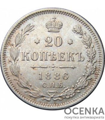 Хотите выгодно продать 20 копеек 1886 года Александр 3 ? Воспользуйтесь услугами нашего сайта, средняя цена товара по Украине oт 150 грн. дo 2500 грн. Мы специализируемся на оценке антикварных, старинных, памятных раритетных предметов, знаем точную цену таким сокровищам.