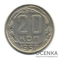 Хотите выгодно продать 20 копеек 1957 года ? Воспользуйтесь услугами нашего сайта, средняя цена товара по Украине oт 1 грн. дo 50 грн. Мы специализируемся на оценке антикварных, старинных, памятных раритетных предметов, знаем точную цену таким сокровищам.