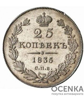 Хотите выгодно продать 25 копеек 1835 года Николай 1 ? Воспользуйтесь услугами нашего сайта, средняя цена товара по Украине oт 195 грн. дo 780 грн. Мы специализируемся на оценке антикварных, старинных, памятных раритетных предметов, знаем точную цену таким сокровищам.
