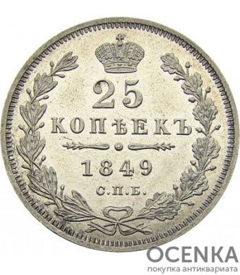 Хотите выгодно продать 25 копеек 1849 года Николай 1 ? Воспользуйтесь услугами нашего сайта, средняя цена товара по Украине oт 75 грн. дo 4440 грн. Мы специализируемся на оценке антикварных, старинных, памятных раритетных предметов, знаем точную цену таким сокровищам.