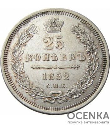 Хотите выгодно продать 25 копеек 1852 года Николай 1 ? Воспользуйтесь услугами нашего сайта, средняя цена товара по Украине oт 180 грн. дo 2300 грн. Мы специализируемся на оценке антикварных, старинных, памятных раритетных предметов, знаем точную цену таким сокровищам.