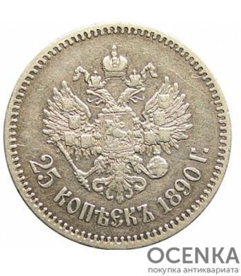 25 копеек 1890 года Александр 3
