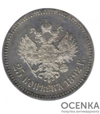 25 копеек 1892 года Александр 3