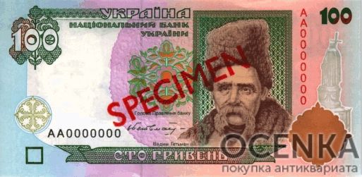 Хотите выгодно продать Банкнота 100 гривен 1995-2000 года SPECIMEN (образец) ? Воспользуйтесь услугами нашего сайта, средняя цена товара по Украине oт 800 грн. дo 5100 грн. Мы специализируемся на оценке антикварных, старинных, памятных раритетных предметов, знаем точную цену таким сокровищам.