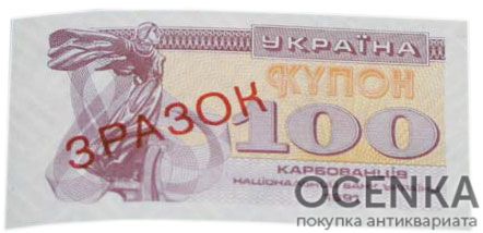 Банкнота 100 карбованцев (купон) 1991 года ЗРАЗОК (образец)