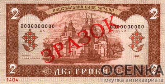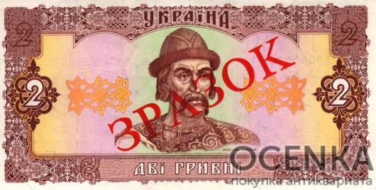 Банкнота 2 гривны 1992 года ЗРАЗОК (образец)