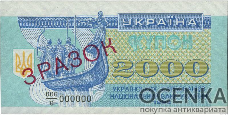 Банкнота 2000 карбованцев (купон) 1993 года ЗРАЗОК (образец)