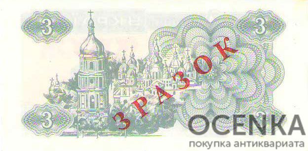 Банкнота 3 карбованца (купон) 1991 года ЗРАЗОК (образец)