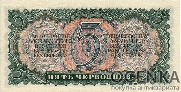 Банкнота 5 червонцев 1937 года