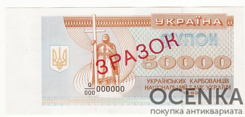 Банкнота 50000 карбованцев (купон) 1993 года ЗРАЗОК (образец)