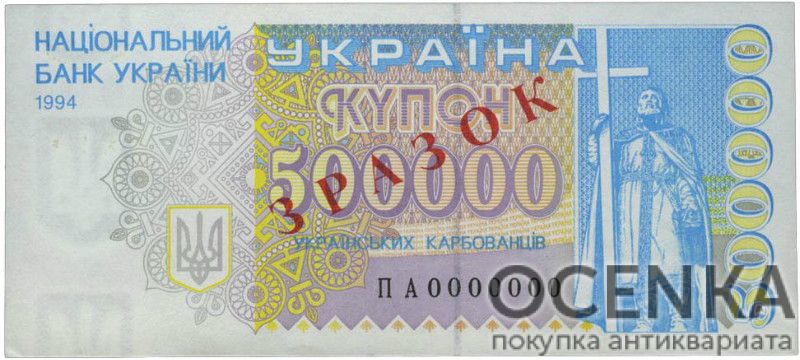 Банкнота 500000 карбованцев (купон) 1994 года ЗРАЗОК (образец)