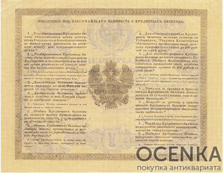 Банкнота (Билет) 1 рубль 1843-1865 годов