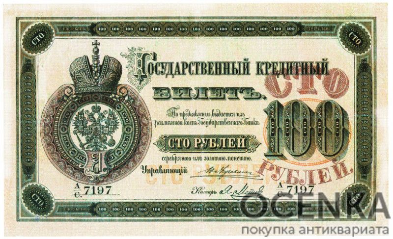Банкнота (Билет) 100 рублей 1866-1886 годов