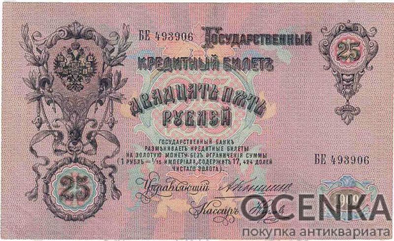 Банкнота (Билет) 25 рублей 1909-1914 годов