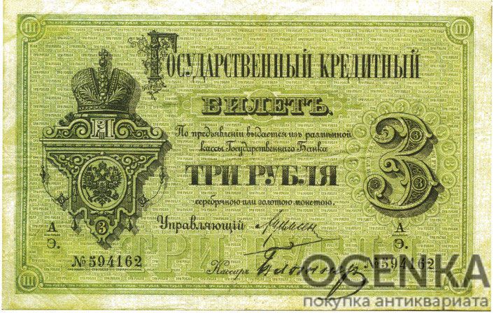 Банкнота (Билет) 3 рубля 1866-1886 годов