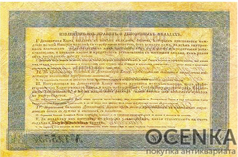 Обращайтесь в «Ocenka-Pokupka», если у вас есть другие образцы из категории Государственный Коммерческий Банк. Билеты Депозитной Кассы 1840 года. Мы за короткий срок проведем оценку и предложим достойное вознаграждение. Гарантируем полную конфиденциальность и безопасность, у нас лучшие цены на рынке.