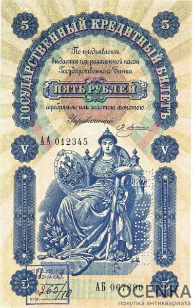 Хотите выгодно продать Банкнота (Билет) 5 рублей 1898-1903 годов ? Воспользуйтесь услугами нашего сайта, средняя цена товара по Украине oт 1500 грн. дo 84000 грн. Мы специализируемся на оценке антикварных, старинных, памятных раритетных предметов, знаем точную цену таким сокровищам.