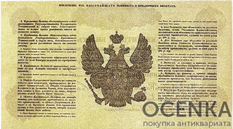 Обращайтесь в «Ocenka-Pokupka», если у вас есть другие образцы из категории Кредитные Билеты Сохранных Казен и Гоосударственного Заемного Банка 1841 года. Мы за короткое время проведем оценку и предложим достойное вознаграждение. Гарантируем полную конфиденциальность и безопасность, у нас лучшие цены на рынке.