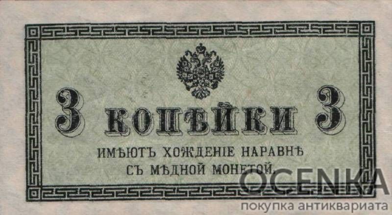 Банкнота (Билет) Казначейские 3 копейки 1915-1917 года