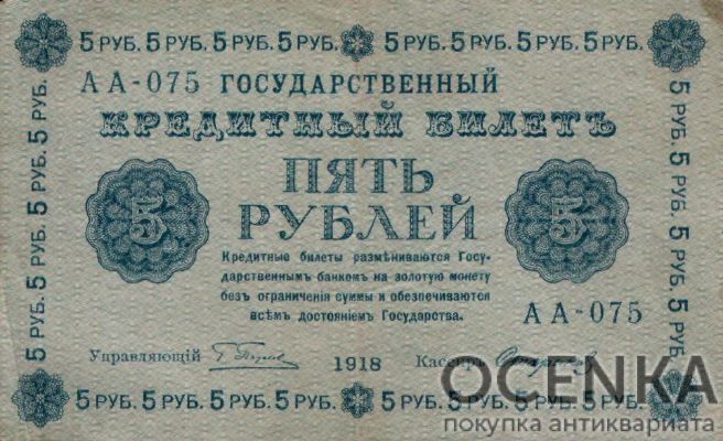 Банкнота РСФСР 5 рублей 1918-1919 года