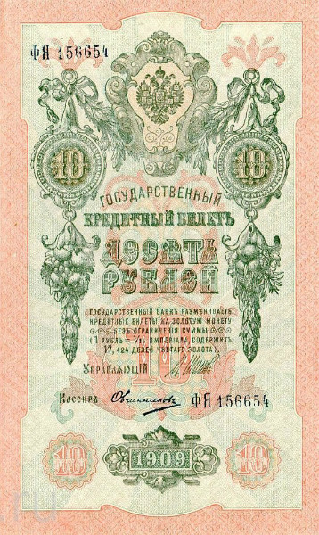 Банкнота (Билет) 10 рублей 1909-1914 годов