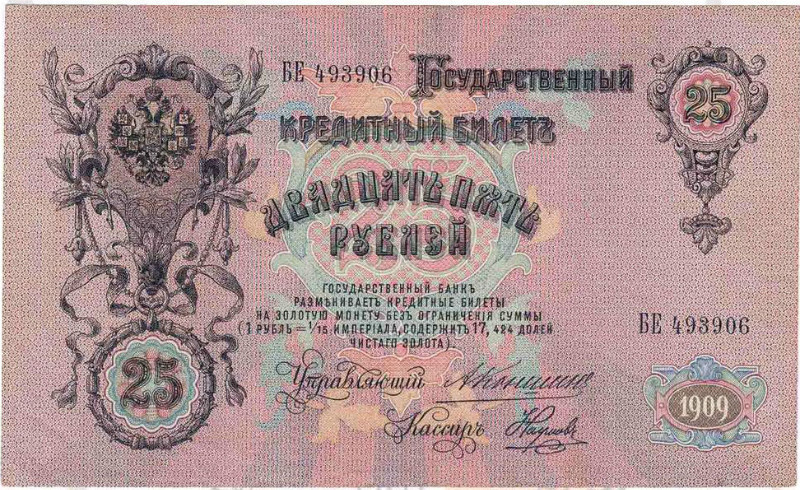 Банкнота (Билет) 25 рублей 1909-1914 годов