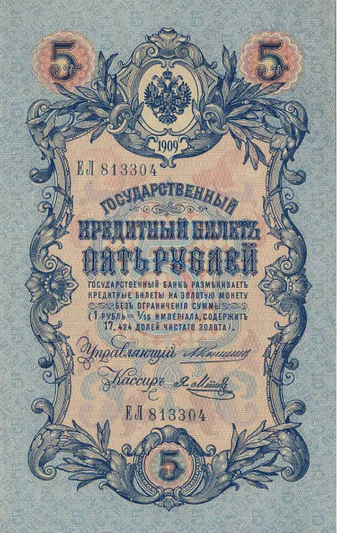 Банкнота (Билет) 5 рублей 1909-1914 годов
