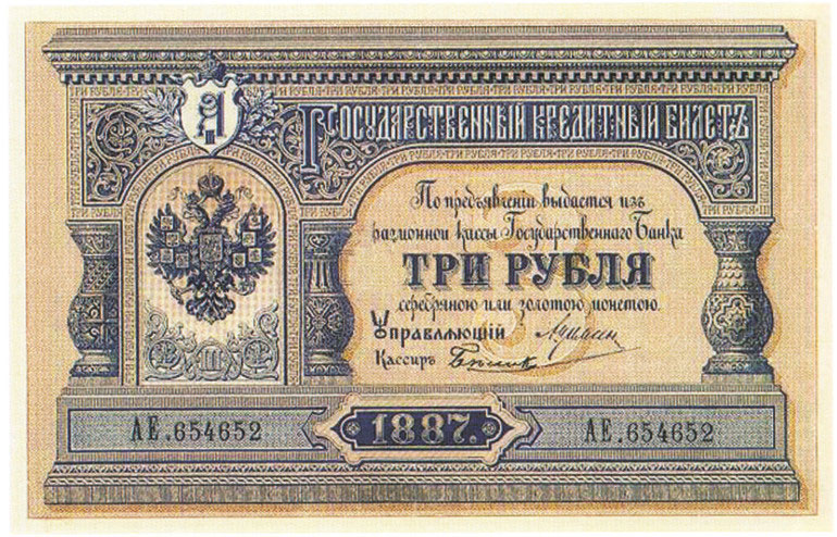 Разменные Кассы Государственного банка пришли на смену Ассигнационному банковскому учреждению. Очередная смена денежных знаков произошла в 1887 году. Тогда было решено выпустить банкноты с новым дизайном и составом бумаги. Так, номиналы 5, 10 и 25 рублей увидели свет в 1898 году, один и три рубля – в 1899 г.