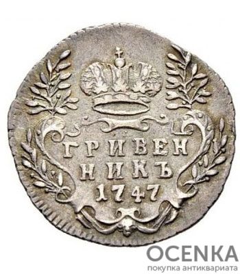 Хотите выгодно продать Гривенник 1747 года Елизавета Петровна ? Воспользуйтесь услугами нашего сайта, средняя цена товара по Украине oт 180 грн. дo 720 грн. Мы специализируемся на оценке антикварных, старинных, памятных раритетных предметов, знаем точную цену таким сокровищам.