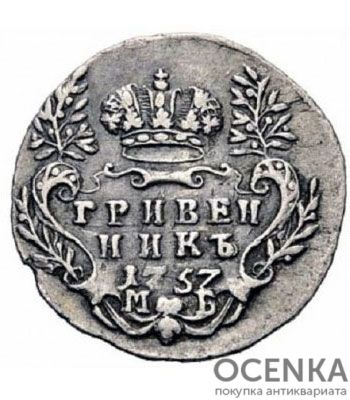 Хотите выгодно продать Гривенник 1757 года Елизавета Петровна ? Воспользуйтесь услугами нашего сайта, средняя цена товара по Украине oт 330 грн. дo 1320 грн. Мы специализируемся на оценке антикварных, старинных, памятных раритетных предметов, знаем точную цену таким сокровищам.