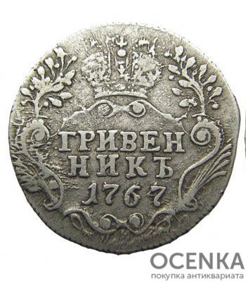 Хотите выгодно продать Гривенник 1767 года Екатерина 2 ? Воспользуйтесь услугами нашего сайта, средняя цена товара по Украине oт 350 грн. дo 1800 грн. Мы специализируемся на оценке антикварных, старинных, памятных раритетных предметов, знаем точную цену таким сокровищам.