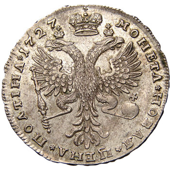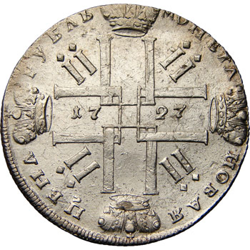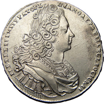 Серебряный монетный ряд времён Петра II – один из самых скудных в отечественной нумизматике в отношении обилия номиналов, поскольку при его правлении чеканилось всего два типа дензнаков – полтина и рубль. Правда, известно о существовании ряда проектов по введению новых разновидностей, однако они, по всей видимости, так и не были рассмотрены. До наших дней дошёл лишь один крайне редкий, почти эксклюзивный, вариант – пробная серебряная копейка 1729 года, однако даже не все каталоги упоминают о её существовании, что лишний раз указывает на степень уникальности этого памятника конца 20-х годов XVIII века. Единственное, что может порадовать коллекционера – это вариативность: специалисты насчитывают семь вариантов полтины и более трёх десятков – рубля, а некоторые источники даже указывают на существование более чем сотни разновидностей этого номинала.