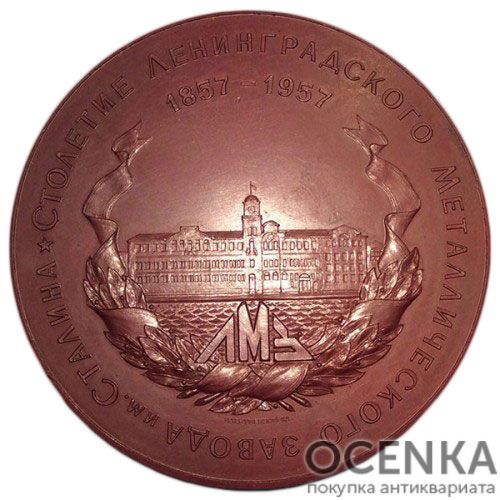 Памятная настольная медаль 100 лет Лениградскому металлическому заводу им.Сталина