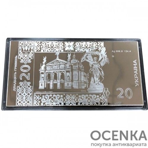 Хотите выгодно продать Серебряная банкнота 20 гривен Украины ? Воспользуйтесь услугами нашего сайта, средняя цена товара по Украине oт 2500 грн. дo 5000 грн. Мы специализируемся на оценке антикварных, старинных, памятных раритетных предметов, знаем точную цену таким сокровищам.