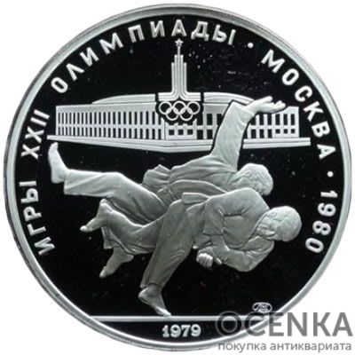 Серебряная монета 10 рублей 1979 года. Олимпиада-80. Борьба дзюдо