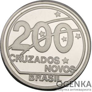 Серебряная монета 200 крузейро (200 Cruzados) Бразилия