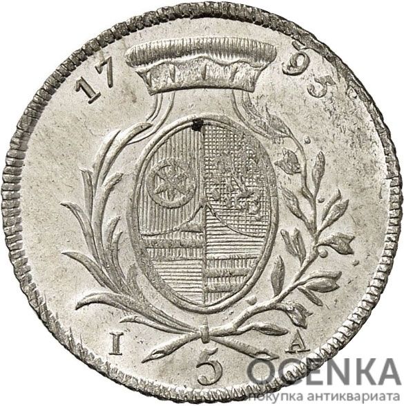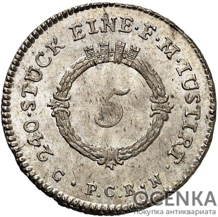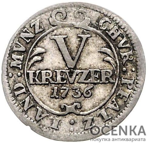 Серебряная монета 5 Крейцеров (5 Kreuzer) Германия