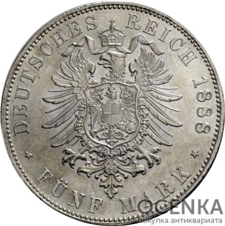 Серебряная монета 5 Марок (5 Mark) Германия