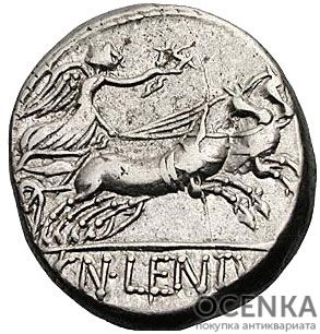 Серебряный Республиканский Денарий Гнея Лентула, 76-74 год до н.э.