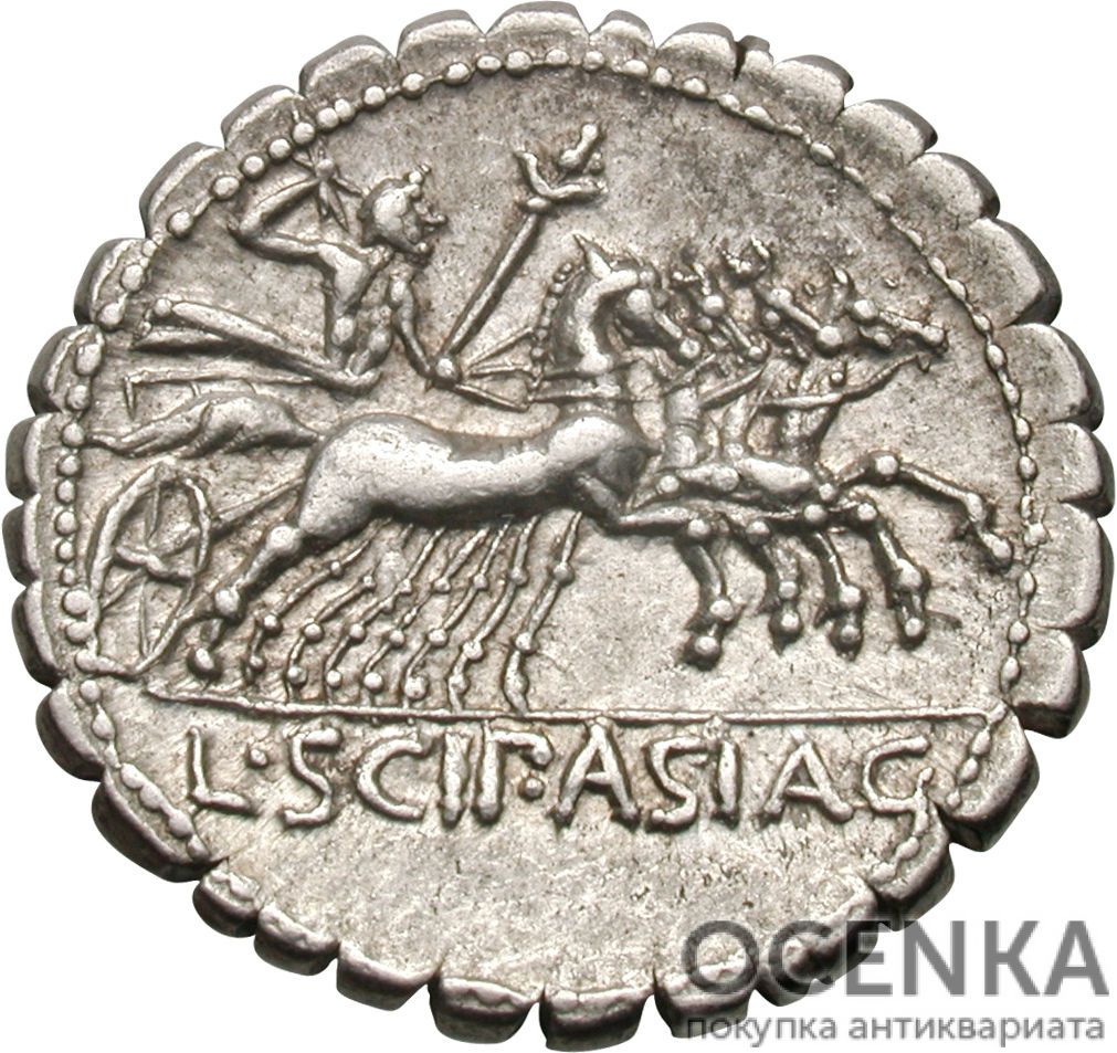 Продажа раритетных вещей может быть выгодной, и наша компания способна это доказать. Цены на Серебряный Республиканский Денарий Луция Корнелия Сципиона Азиатского, 106 год до н.э. oт 2000 грн. дo 40000 грн, и мы готовы вам предложить лучшую за ваш экземпляр. Антиквариат, старинные предметы, раритетные вещи – все это интересно коллекционерам, поэтому мы проводим скупку по всей Украине. Продавать нам выгодно, ведь у «Оценка» профессиональный подход.