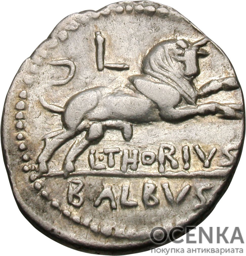 Серебряный Республиканский Денарий Луция Тория Бальбина, 105 год до н.э.