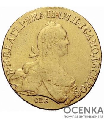 У період правління Катерини 2 зовнішній вид золотих монет не зазнав істотних змін. Звичайно ж, у них був присутній культовий мотив, а саме зображення гербів на реверсі, а також портрет цариці Катерини. 10 рублів 1776 — один із найжаданіших екземплярів, які хочуть мати у своїй колекції нумізмати.