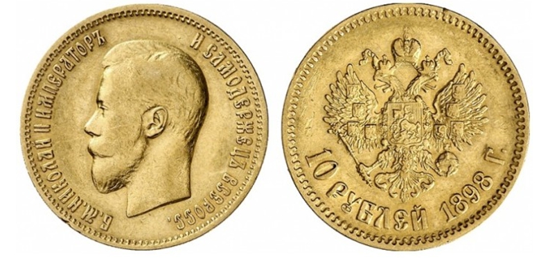 Про те, якою є приблизна аукціонна вартість 10 рублів 1898 року, можна судити хоча б за такими даними. Навесні 2018 року їхній зразок: