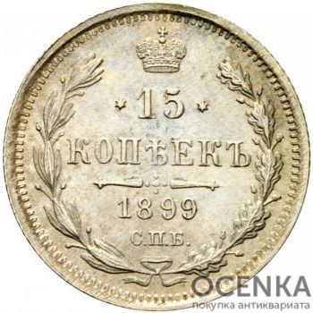 Бажаєте вигідно продати 15 копійок 1899 року Микола 2 ? Скористайтеся послугами нашого сайту, середня ціна товару по Україні від 40 грн. дo 500 грн. Ми спеціалізуємось на оцінці антикварних, старовинних, пам'ятних, раритетних предметів, знаємо точну ціну таким скарбам.